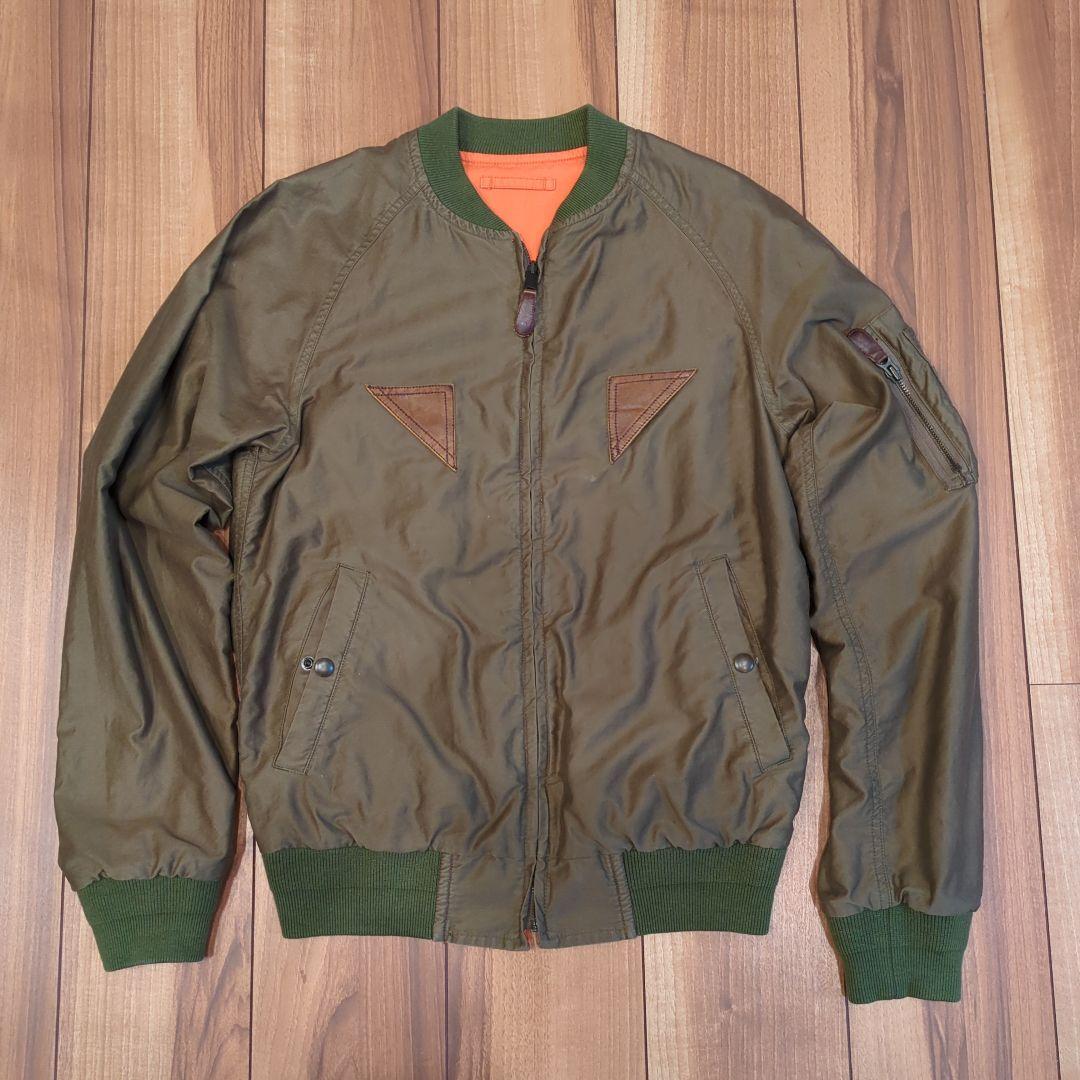 リバーシブルMA-1カーキMサイズサイズ表記は写真にて確認ください。裏面はグッドイナフのライダースジャケットをイメージされた、ベージュに赤と水色のライン定価76000円×Taxでした。